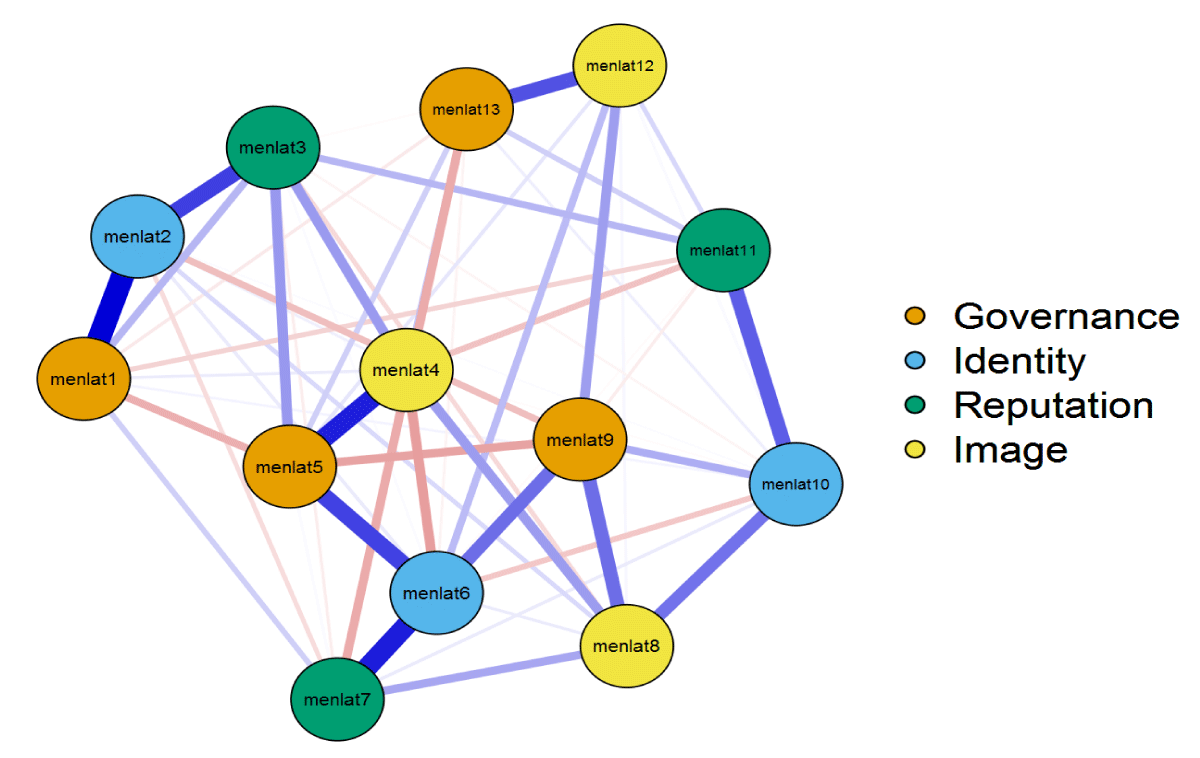 A total of 56 abstracts were selected to establish the relationships between the categories. Based on a Delphi Inventory, expert judges on the topics rated the relationships between the summaries; considering 1 for training, 2 for identity, 3 for reputation, 4 for image, and 5 for corporate governance (Table 2).